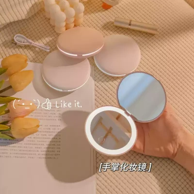 化妆镜便携随身小镜子带灯led补妆镜口袋迷你手持发光折叠圆镜子