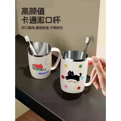 不锈钢洗漱口杯防霉刷牙杯子带手柄高颜值2025新款可爱情侣杯
