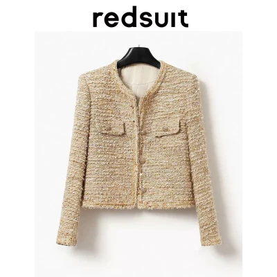 redsuit 名媛风奢华亮丝肌理感编织香槟金粗花呢小香风短外套上衣