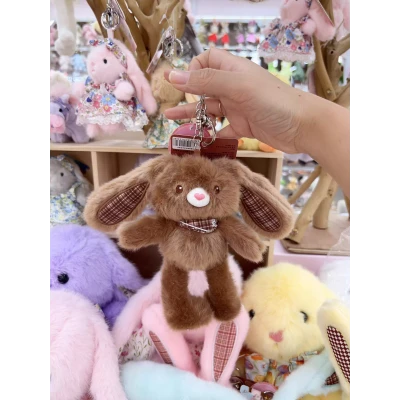 网红抽拉兔子钥匙扣挂件拉耳兔玩偶小号毛绒公仔书包背包包挂饰链
