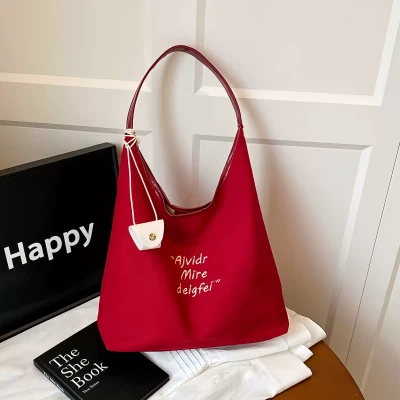 超火红色大容量帆布包包女2025新款休闲单肩腋下包百搭通勤托特包