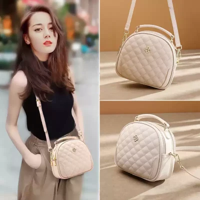 正品包包2025新款香风菱格小圆包单肩韩版真皮手提多层斜挎包女潮