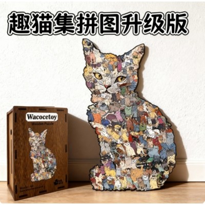 趣猫集拼图爱猫人士礼物异形猫咪拼图高难度超难烧脑木制puzzle