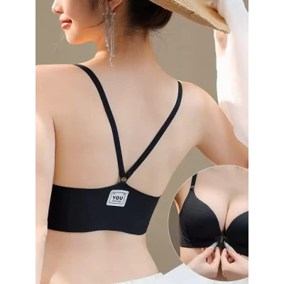 性感前扣内衣女小胸聚拢显大无钢圈防下垂Y型美背光面无痕文胸罩
