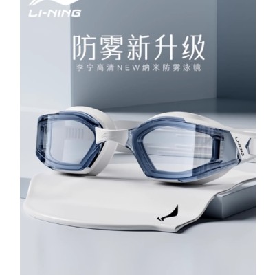 李宁泳镜女游泳眼镜泳帽套装高清防雾防水小框近视带度数男款成人