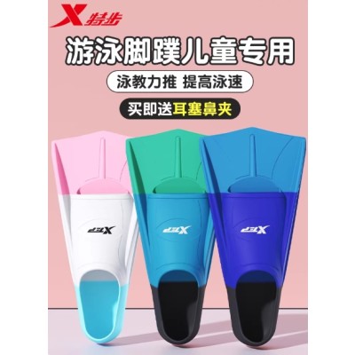 特步脚蹼游泳专用儿童青少年成人自由泳女士蛙泳专业训练短脚蹼