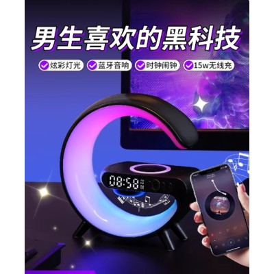 无线充电时钟蓝牙音箱小夜灯氛围适用于苹果手机充电器带闹钟华为安卓vivo小米typec桌面底座