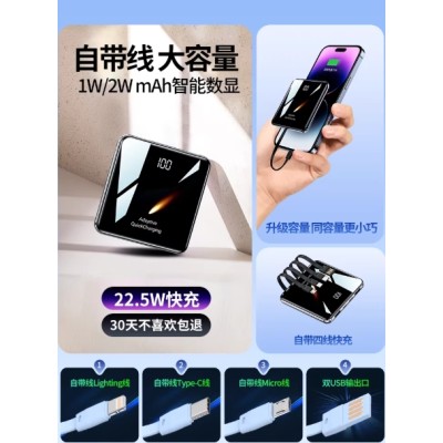 【充电宝3c认证可上飞机】2026新款大容量20000毫安自带线快充