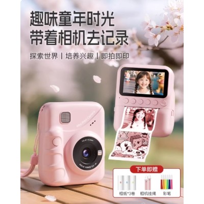 儿童拍立得照相机可拍照打印彩色照片10岁女孩生日礼物6新年玩具8