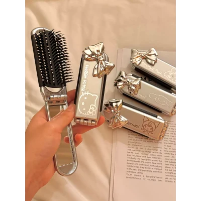 可爱小梳子女随身便携折叠气垫梳带镜子一体按摩气囊梳迷你化妆镜