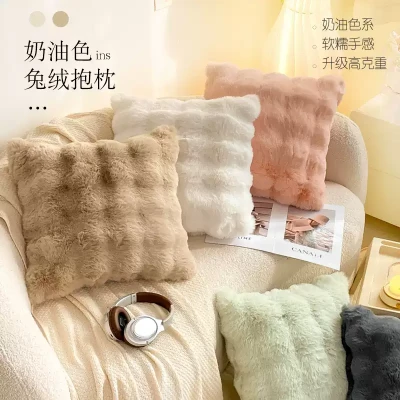 双面兔毛泡泡绒抱枕沙发客厅靠枕办公室靠背冬季床头靠垫不含芯