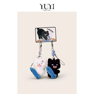原创一对炸毛小猫鱼毛绒公仔书包包挂件双人闺蜜情侣钥匙扣女