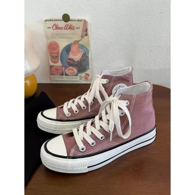 豆沙色时尚青春学院系带港风休闲潮流韩版百搭平底经典复古帆布鞋