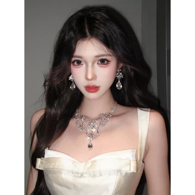 千金感水钻项链耳环套装女轻奢夸张颈链高级感新娘晚礼服配饰耳饰