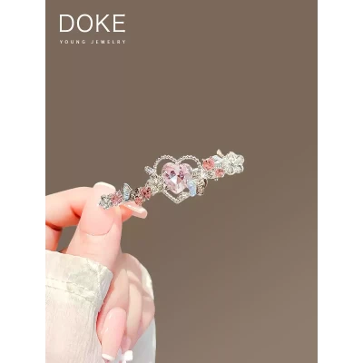 精致甜酷爱心水钻发夹女小众设计感侧边夹刘海碎发夹气质发卡头饰