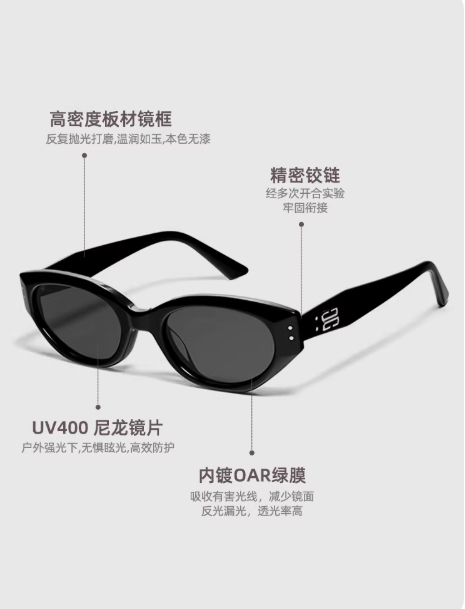 ROCOCO高级感GM猫眼墨镜女偏光开车可配近视度数带防紫外线太阳镜