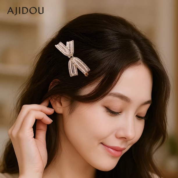赵丽颖同款发夹阿吉豆珍珠蝴蝶结侧边夹鸭嘴夹发饰夹子头饰女发卡