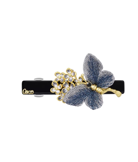 Cercoo/奢蔻绣蝶花语发夹后脑勺头饰弹簧发卡一字夹子发饰优雅女