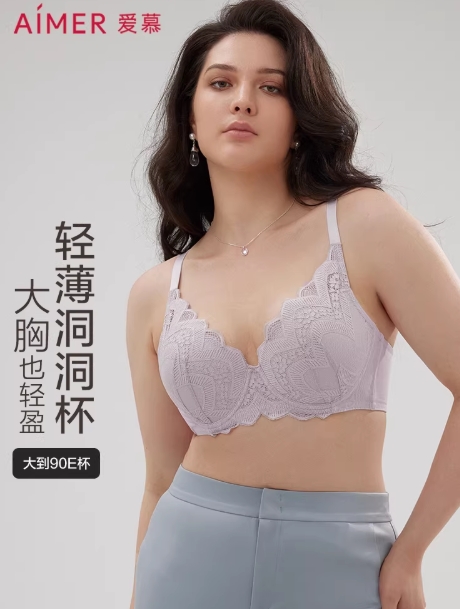 爱慕内衣女大胸显小国风薄款收副乳软钢圈洞力装透气大杯文胸春夏