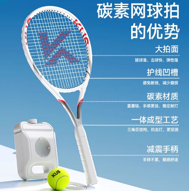 碳素网球训练器单人打带线回弹自练神器初学者一个人的网球拍套装