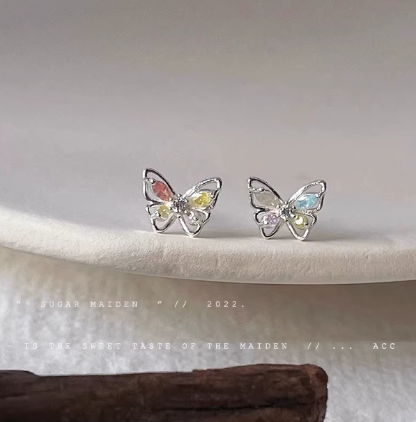 「庄周梦蝶」超可爱镶嵌彩锆蝴蝶小耳钉~迷你耳饰耳夹超精致