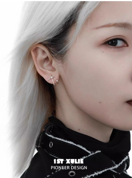 1STXULIE锆石耳钉925纯银养耳洞多戴法耳环中性小众设计高级耳饰