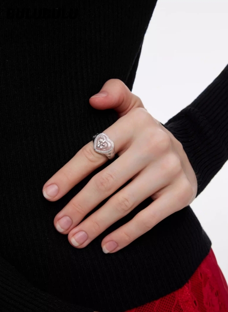 BULUBULU 宿命系列 原创粉色十字架爱心戒指女小众设计手饰食指戒