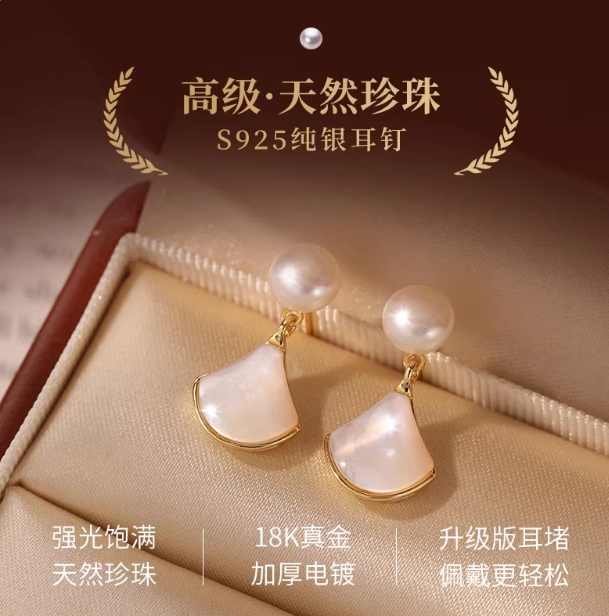 赵露思同款天然珍珠母贝扇子耳环2026新款轻奢小众秋冬爆款耳钉女