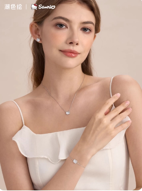 潮色绘x三丽鸥HelloKitty耳钉女925纯银小众轻奢kt猫耳饰生日礼物