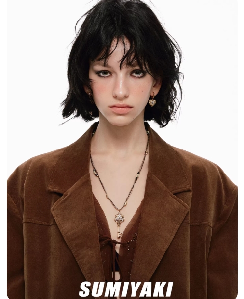 SUMIYAKI 爱锁芯系列浮雕钥匙串珠编绳项链复古毛衣链女