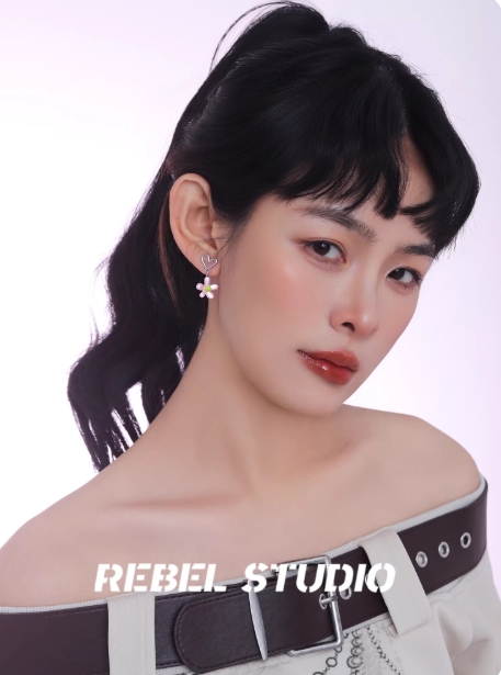粉色花朵小熊耳环女甜美气质不对称设计感可爱新款轻奢高级感耳饰