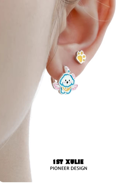 1STXULIE天使猫咪小狗耳扣原创小众设计可爱耳钉耳环甜酷高级耳饰
