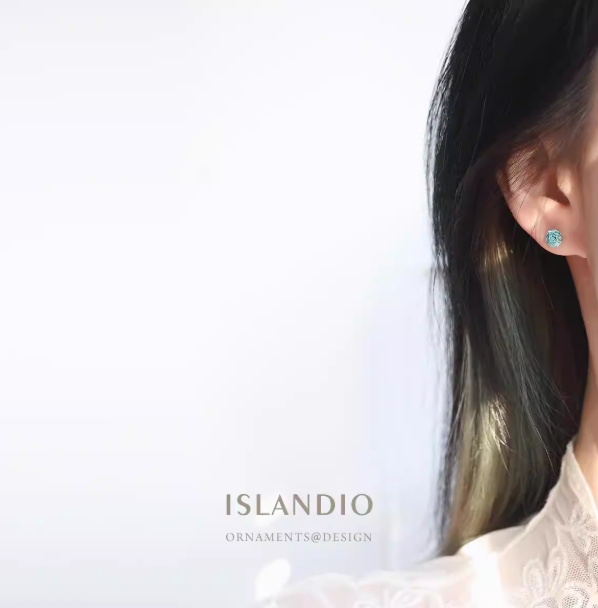 ISLANDIO原创冰川玫瑰帕拉伊巴s925纯银耳钉爆闪八边春夏耳骨钉女