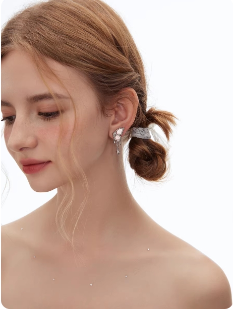 BULUBULU原创镜面蝴蝶耳钉粉色耳夹轻奢高级感耳饰女设计感配饰品