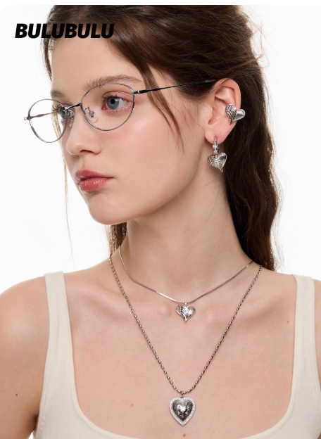 BULUBULU告白拉丝爱心米珠项链女小众设计金属颈链长款毛衣链吊坠