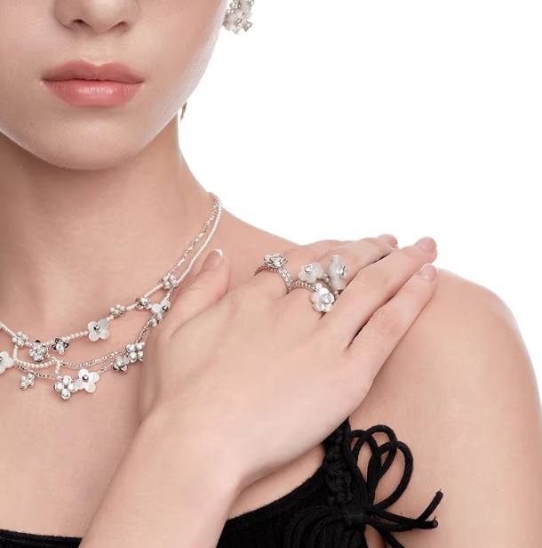 YVMIN尤目 贝母花朵锆石人造珍珠戒指可叠戴生日礼物