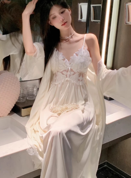 【纯欲风白月光】睡衣女性感2026新款春秋冰丝吊带睡裙带胸垫长裙
