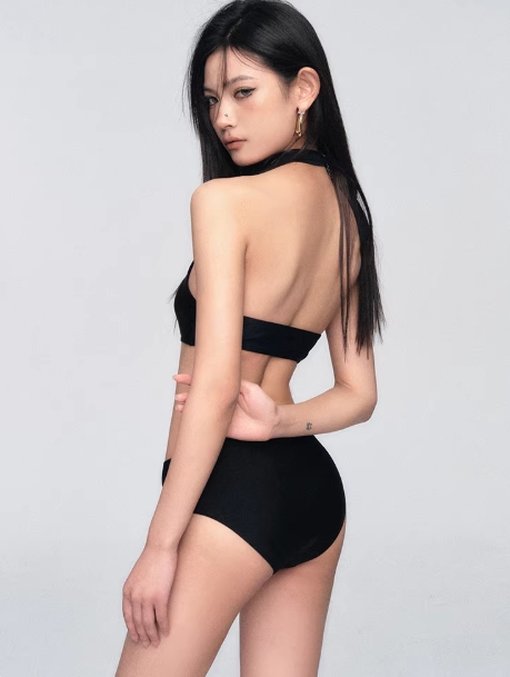 Pinkup 新款高端酷辣性感时尚显白黑色温泉度假三角比基尼泳衣女