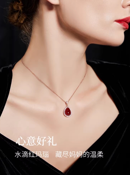 JAY红玛瑙项链38妇女节礼物送妈妈长辈生日礼物首饰水滴吊坠