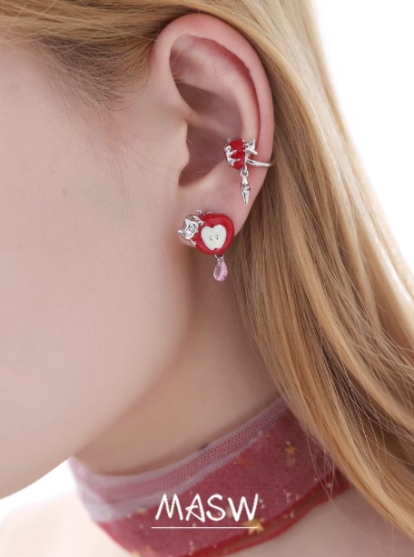 MASW麻秀原创设计可爱趣味切片苹果耳环女不对称轻奢猫猫耳钉新款
