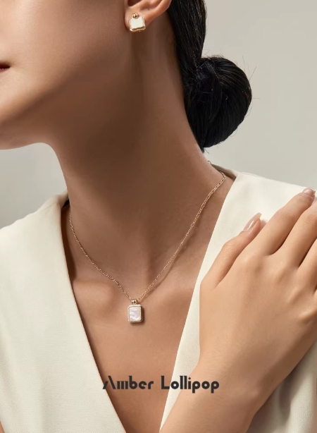 AmberLollipop天然白贝母项链女方形吊坠锁骨链小众颈链百搭配饰