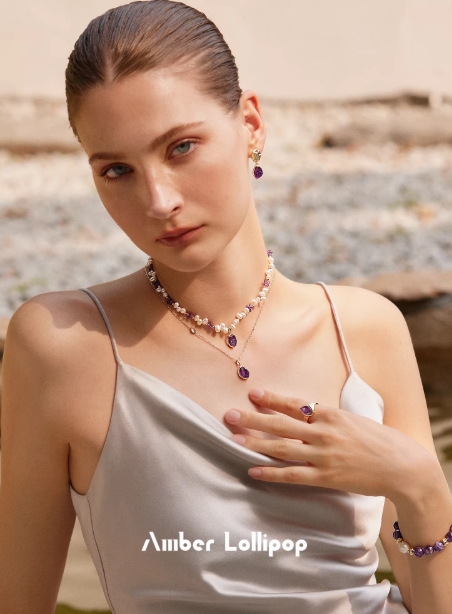 Amber Lollipop天然紫水晶项链女2026新款宝石吊坠锁骨链小众配饰