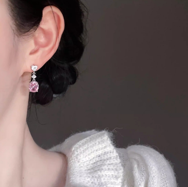 「爱心桃桃」粉色爱心小众耳环蚊香盘耳夹女法式流苏耳饰甜美耳钉