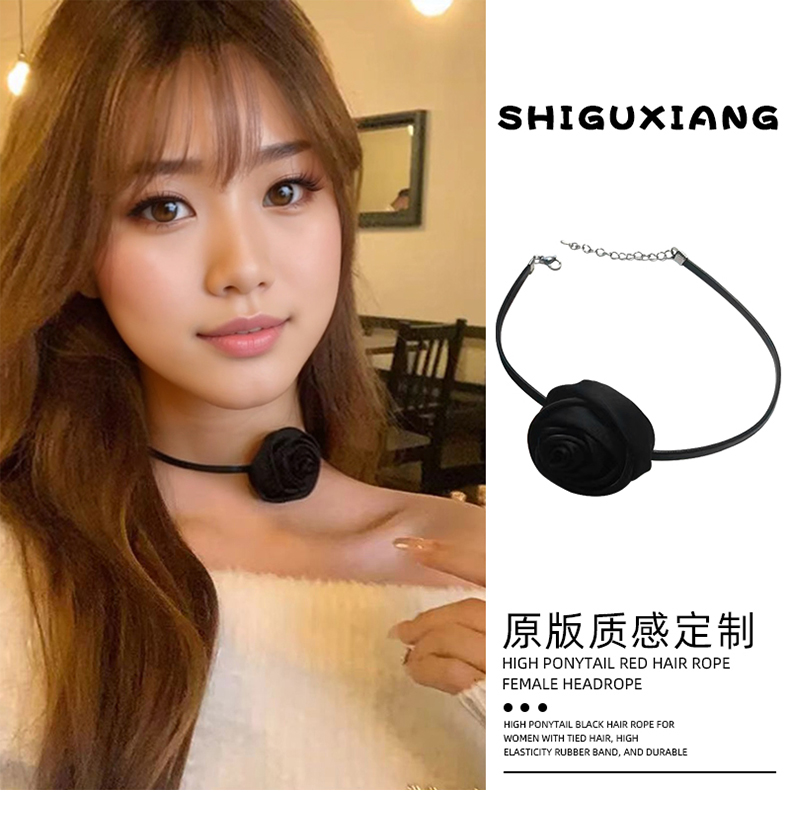 山茶花项链女choker项圈黑色玫瑰花锁骨链颈链素链脖子配饰系花