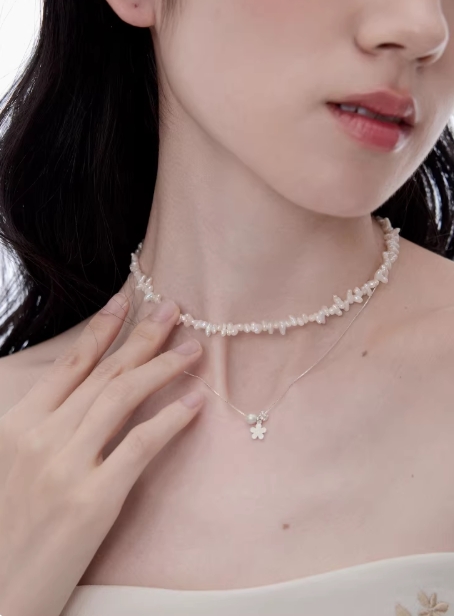 NO SOLUTION 不规则天然珍珠双层颈链原创设计少女风纯银项链叠戴