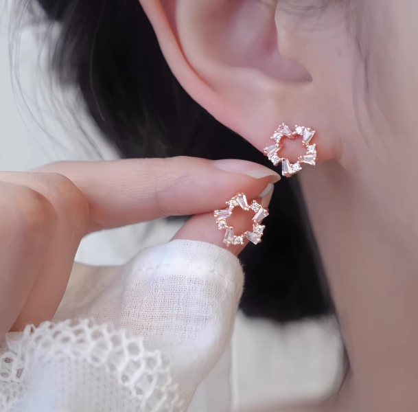 「粉丛生」镂空星星耳饰蚊香盘耳夹无耳洞轻奢高颜值耳钉小巧精致
