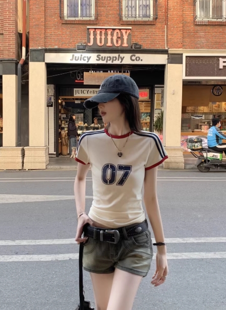 美式复古撞色印花百搭正肩短袖T恤女夏季新款设计感小众独特上衣