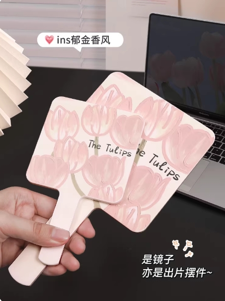 手持化妆镜学生补妆女ins风高颜值宿舍工位随身手柄拿便携小镜子