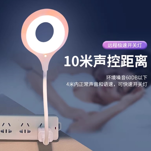 人工智能语音台灯控制灯USB声控灯感应灯led插口小夜灯一体床头灯插电既可声控唤醒限时 一个装