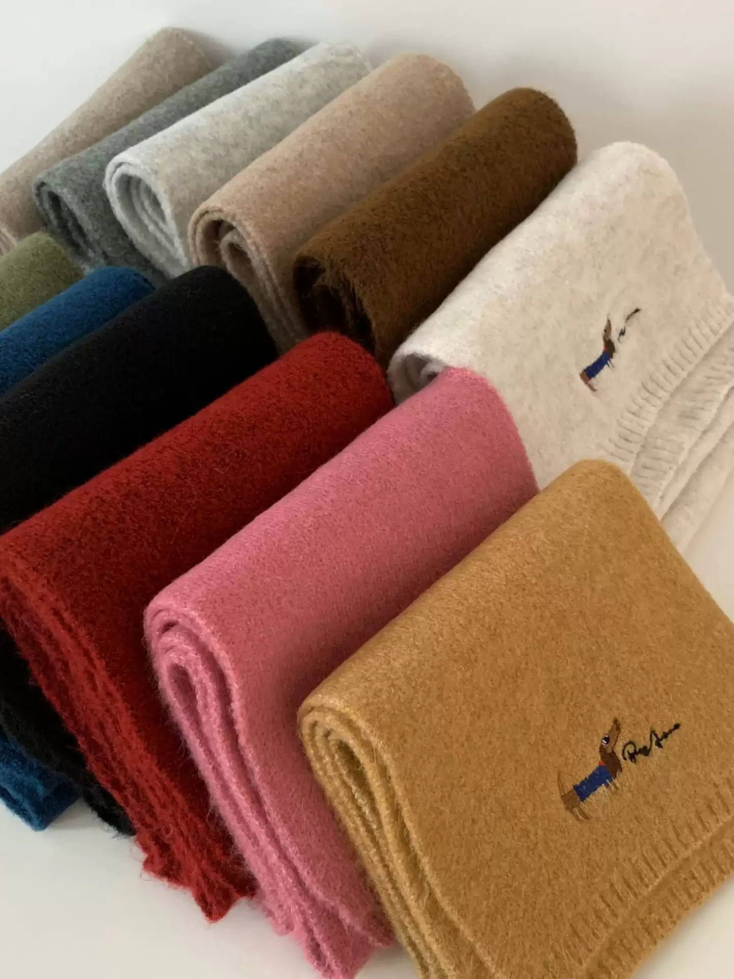 韩系氛围感小狗刺绣含羊绒围巾女2025新款秋冬季保暖针织毛线围脖